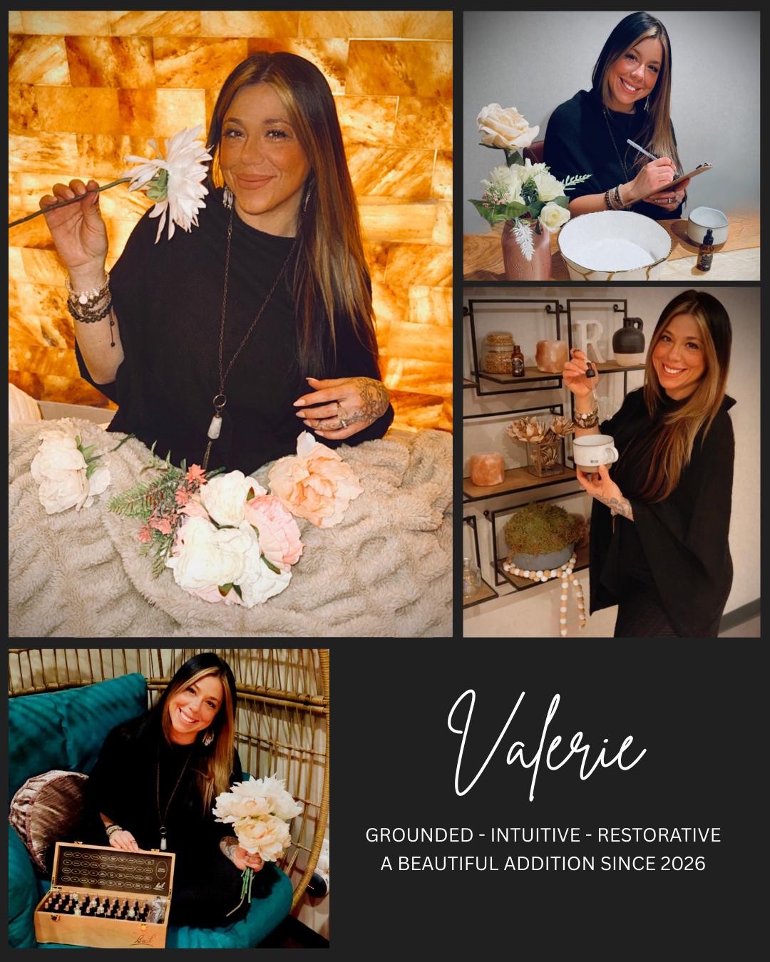 Rooted in deep spirituality, holistic health, and a passion for emotional healing, Valerie brings a beautiful layer of soul-centered wellness to our Salt Sanctuary. Her life journey — through personal loss, trauma, faith exploration, and natural health studies — has shaped her into a powerful advocate for inner healing and transformation.